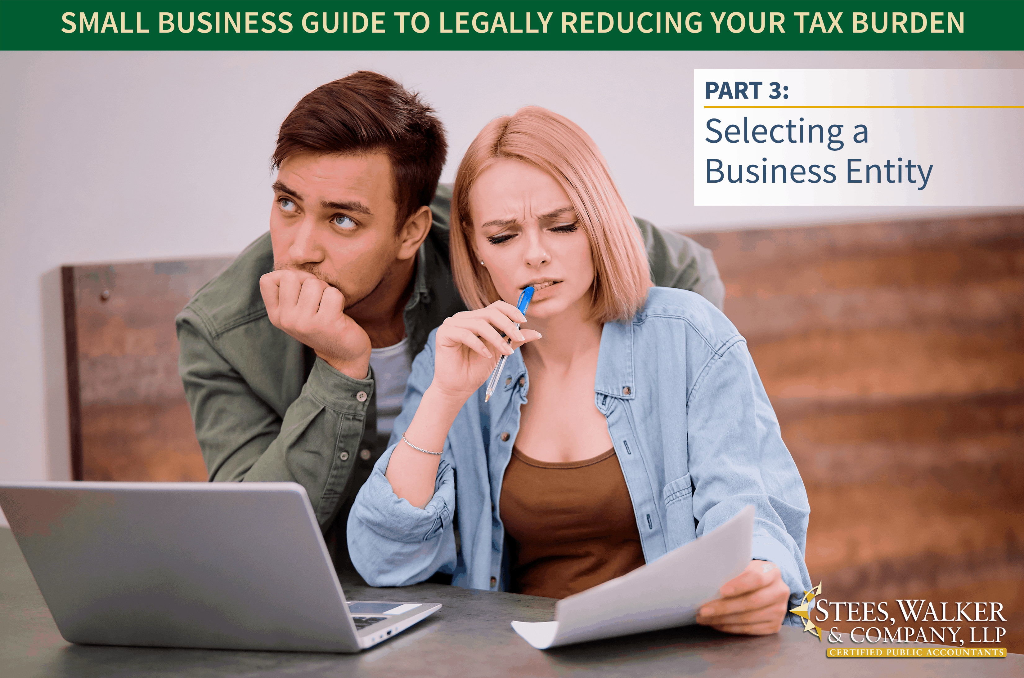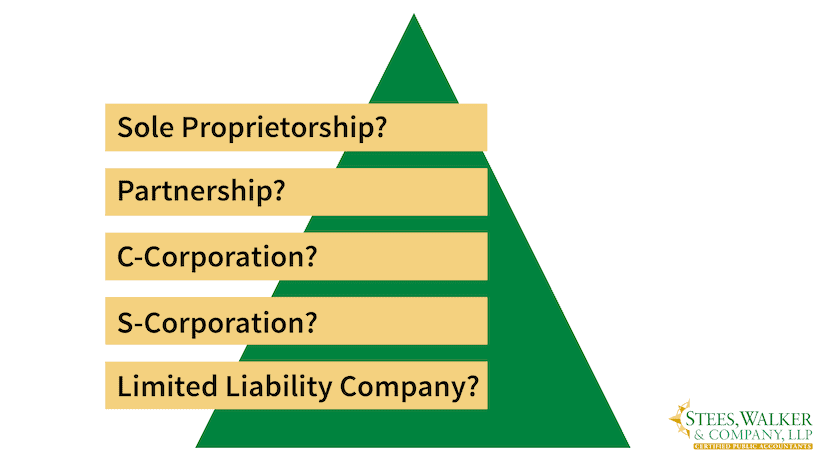 Disclaimer: The information in this blog post about selecting a business entity is provided for general informational purposes only and may not reflect current financial thinking or practices. No information contained in this post should be construed as financial advice from the staff at Stees, Walker & Company, LLP, nor is this the information contained in this post intended to be a substitute for financial counsel on any subject matter, or intended to take the place of hiring a Certified Public Accountant in your jurisdiction. No reader of this post should act or refrain from acting on the basis of any information included in, or accessible through, this post without seeking the appropriate financial planning advice on the particular facts and circumstances at issue from a licensed financial professional in the recipient’s state, country or other appropriate licensing jurisdiction.